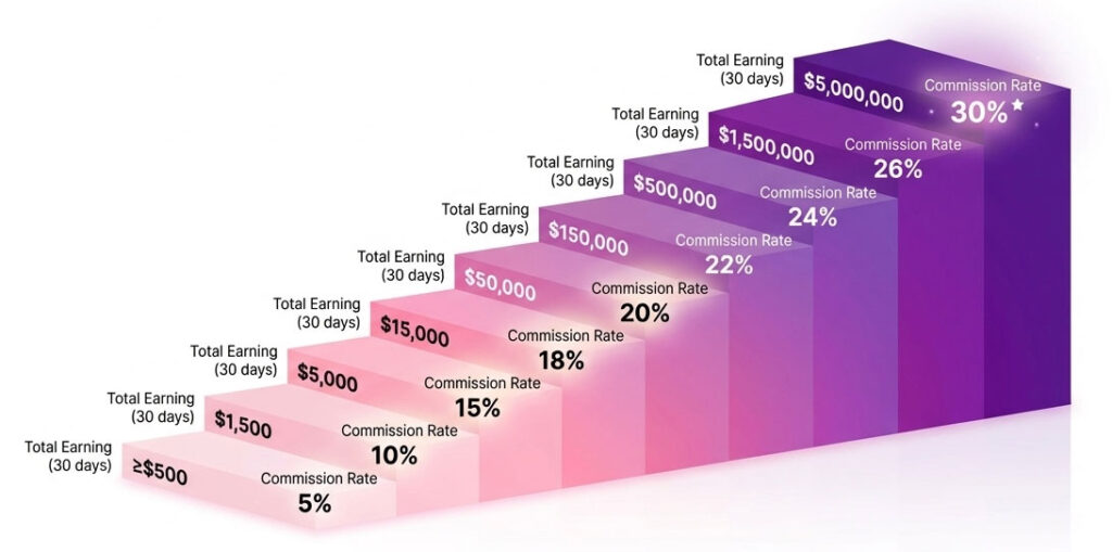 | Class | Total Earning in Recent 30 Days (USD) | Commission Ratio |